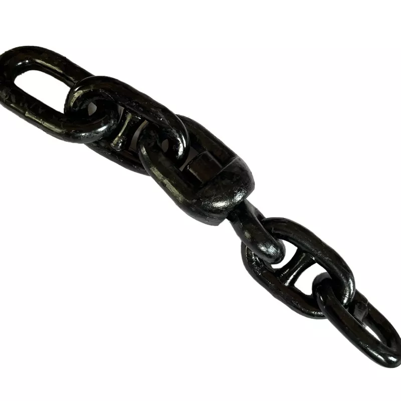 நங்கூரம் சங்கிலிக்கான ஒரு ஸ்விவல் முன்னோடி ஒரு பகுதியைக் காட்டிலும் இணைப்புகளின் தொகுப்பு மற்றும் ஒரு சுழல் ஆகியவற்றால் ஆனது. அதன் வடிவமைப்பு நெகிழ்வுத்தன்மையை தியாகம் செய்யாமல் அதிக சுமைகளின் கீழ் வலிமையை உறுதி செய்கிறது. வகையைப் பொறுத்து, இது வழக்கமாக இறுதி இணைப்பு, விரிவாக்கப்பட்ட இணைப்புகள், பொதுவான இணைப்பு மற்றும் ஒரு சுழல் ஆகியவற்றுடன் வருகிறது. இவை அனைத்தும் கடல்-தர எஃகு மூலம் தயாரிக்கப்படுகின்றன, மேலும் அவை நங்கூர சங்கிலி அமைப்புடன் துல்லியமாக பொருந்தக்கூடிய வகையில் திறமையாக உருவாக்கப்படுகின்றன.